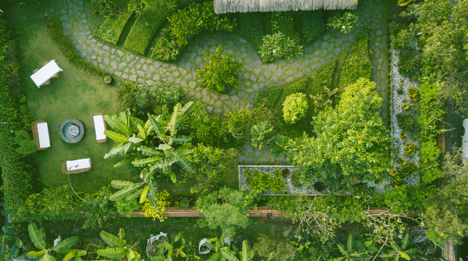 Penghormatan terhadap alam dan budaya Bali diwujudkan melalui Food Forest yang disebut “Tanah Teba” yang bermakna “ladang kosong di belakang rumah”. Makna tersebut diwujudkan melalui pemanfaatan lahan sebagai tempat pengolahan sampah organik, menanam tanaman sarat gizi yang menjadi bukti dedikasi Goldfarb dan tim dalam menciptakan lingkungan yang seimbang dan berkelanjutan.