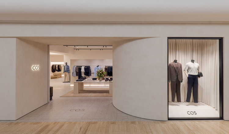 Dirancang secara internal oleh tim spesialis interior COS, toko ini mengusung konsep keanggunan yang tenang dalam balutan desain kontemporer. Fasad eksterior yang menggunakan clay lime plaster memberikan kesan pertama yang organik dan kokoh, sementara bagian interior didominasi oleh palet warna netral yang berfungsi sebagai latar tenang bagi koleksi ready-to-wear dan aksesori terbaru.