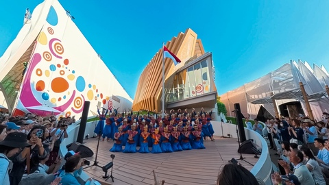 Berbagai lagu tradisional yang dihadirkan seperti “Ondel-ondel” (Betawi), “Tak Tong Tong” (Minang), dan “Cublak-cublak Suweng” (Jawa) diharmonisasi ulang dengan aransemen segar dan modern oleh komposer muda Indonesia – Fero Aldiansyah Stefanus dan Elwin Hendrijanto. Didukung koreografi atraktif dan teknik vokal merdu, penampilan anak-anak didik Avip Priatna, Luciana Dharmadi Oendoen, David Hartono Chendra, dan Rainier Revireino ini sukses memukau dan mendapatkan tepuk tangan meriah dari para pengunjung Expo Osaka.
